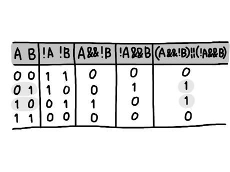 A xor B, A⊕B, A⊻B, A≢B 등으로 표시한다. 모두 같은 의미이다.