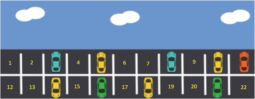 다음은 주차 공간이 22개인 주차장의 모습이다.