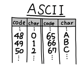 아스키코드 값을 문자로 출력한다.