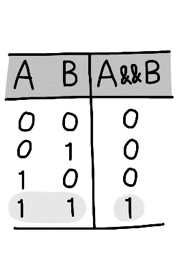 && 연산자는 주어진 두 값의 평가값이 모두 true 일 때에만 true 로 계산되고, 그 외의 경우는 false 로 계산된다.