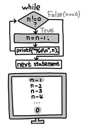 1174: [기초-반복 실행구조] 정수 1개 입력받아 카운트다운 출력하기2(설명)(C)