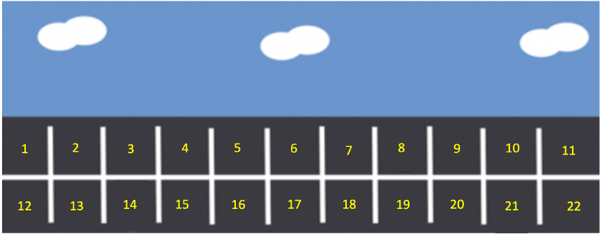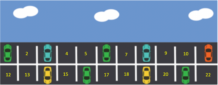 다음은 주차 공간이 22개인 주차장의 모습이다.